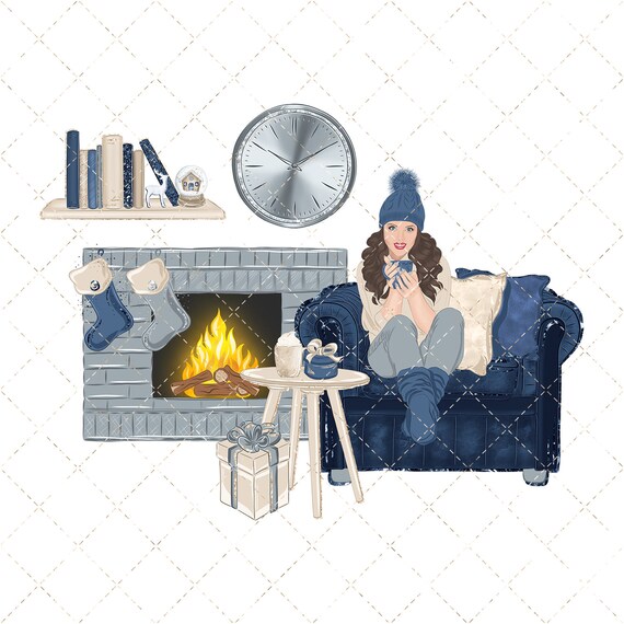 Homey Winter Clipart Cozy Clipart Christmas Clipart Home Armchair Books Christmas Tree Pillows Christmas Stocking Clipart