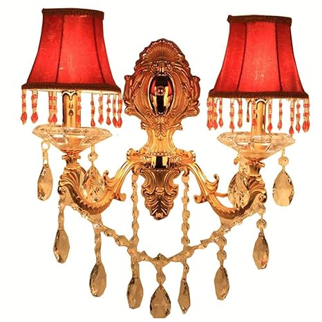 European Gold Carved Alloy Fabric Lampshade Crystal Corridor
