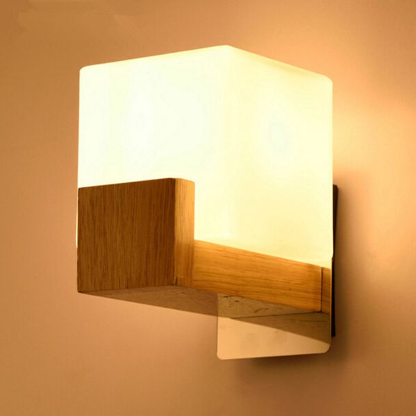 Modern Minimalist Bedroom Led Solid Wood Glass Wall Lamp