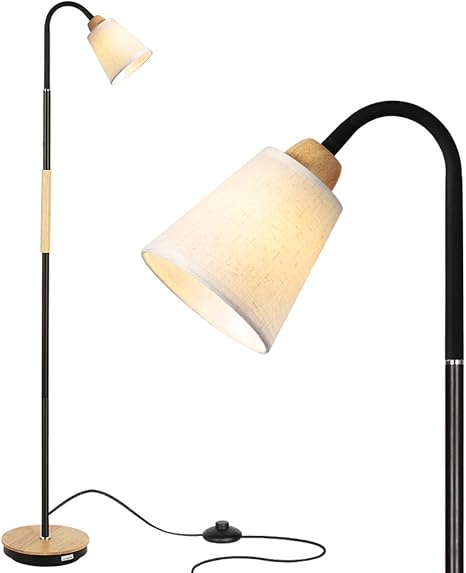 Floor Lamps With Wood Mid Rod Simple Standing Light Rustic Standing Reading Lamps For Living Room Bedroom Office Farmhouse