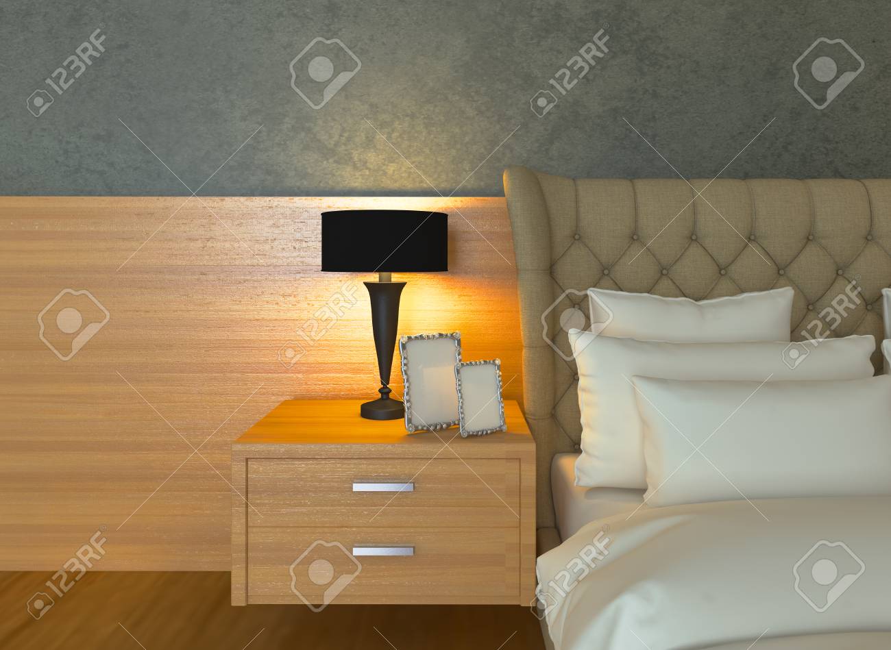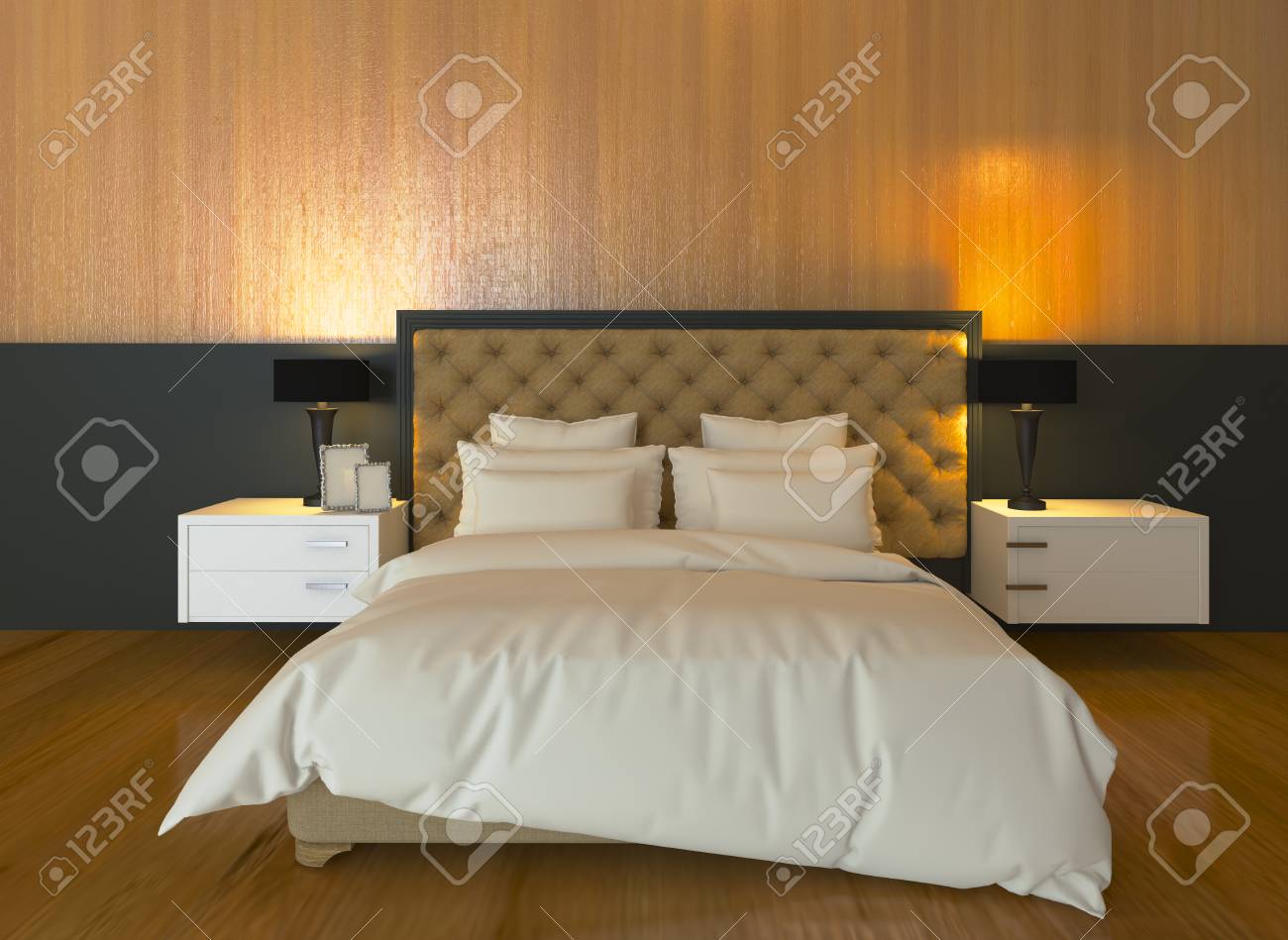 The Interior Style Minimalist Bedroom Small Area With Lamp 3d