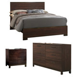 Solid Wood Walnut Finish Modern Minimalist 4pc Bedroom Set