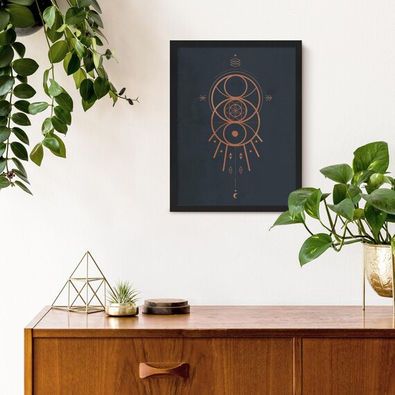 Sacred Geometry Wall Art Framed Minimalist Art Modern Boho Wall Art Prints Dark Bohemian Bedroom Wall Art