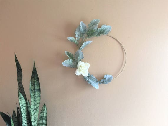 Flower Wreath Girl Nursery Wall Hanging Decor Boho Bohemian Simple Modern Minimalist Bedroom Gift Idea Lambs Ear White Floral Dorm Decor