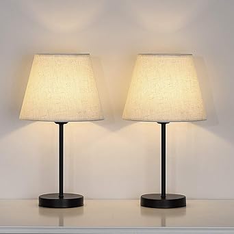 Bedside Table Lamp Set Of 2 Modern Small Nightstand Lamp Minimalist Metal Desk Lamp With Linen Shade For Dresser Bedroom Living Room Coffee