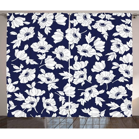 Navy And White Curtains 2 Panels Set Botanical Arrangement